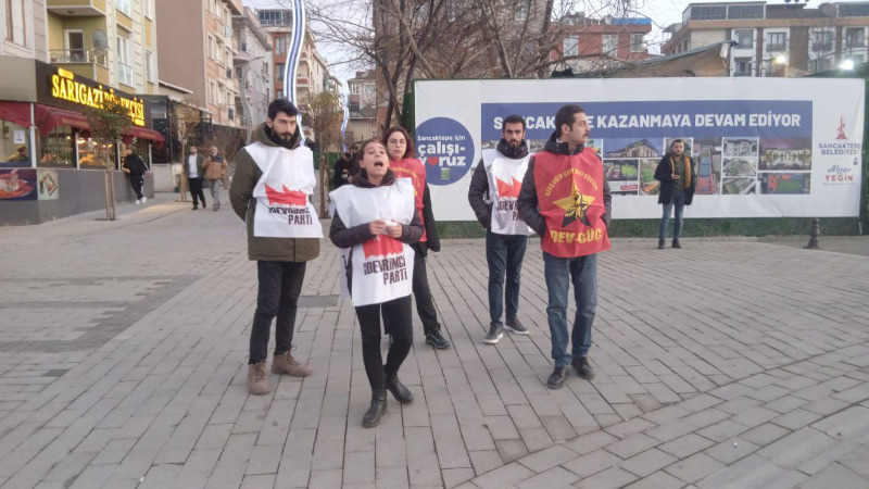 Devrimci Parti ve Dev-Güç, Suriye'de Alevilere yönelik katliamı ve ABD'nin Venezuela'ya yönelik saldırılarını Sarıgazi'de protesto etti. Eyleme saldıran polis, Mediha Yüksel, Yağmur Alaz Gülveren, Kenan Örpek, Barış Süleymanoğlu ve Berkan Deveci'yi gözaltına aldı. Geceyi karakolda geçiren 5 devrimci bugün Anadolu Adliyesi'ne çıkarılacak.