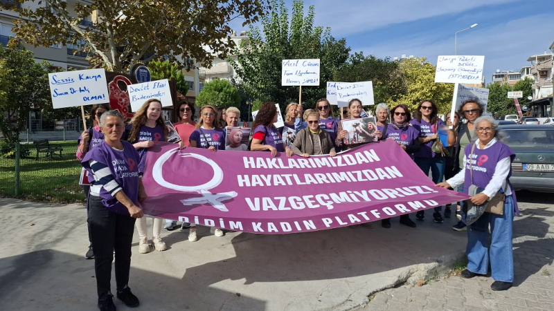 Aydın'ın Didim ilçesine bağlı Atatürk Caddesi'nde bir araya gelen kadınlar, "Haklarımızdan hayatlarımızdan vazgeçmiyoruz" pankartı, "Yargı paketi değil yaşam güvenliği istiyoruz", "Devlet elini bedenimden çek", "Sessiz kalma suça ortak olma" dövizleri açarak eylem yaptı.