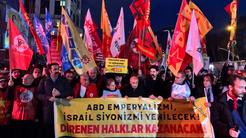 ABD ve İsrail'in İran yönelik saldırılarına karşı İsrail Konsolosluğu önüne yürüyen Emek Barış ve Demokrasi Güçleri, "İran ve Lübnan halklarının emperyalist-siyonist saldırganlığa karşı direnişi meşrudur. Halkların dayanışması bu karanlığı yenecek güçtedir" dedi.