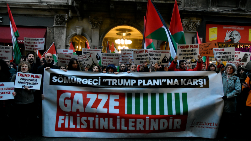 Türkiye'de iktidarın, ABD'nin Gazze'yi kontrol etme planını desteklediğini belirten Nihle Kalem, "Geçtiğimiz Kasım ayında Türkiye'nin de aralarında olduğu 9 ülke, ABD'nin Birleşmiş Milletler Güvenlik Konseyi'ne sunduğu, 'Trump Planı' çerçevesindeki karar tasarısını destekleyen bir açıklama yaptı. Gazze'yi 2 yıl boyunca ABD yönetiminde bir sözde 'Barış Meclisi'ne devreden Filistin direnişinin silahsızlandırılmasını, Gazze'de egemenliğin Filistinlilere değil sömürge yönetimi niteliğinde bir uluslararası heyete verilmesini içeren karar Güvenlik Konseyi'nde kabul edildi" dedi.