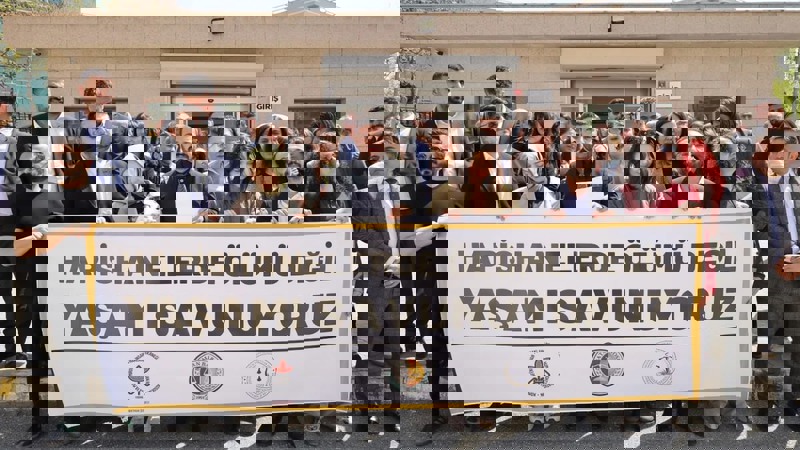 İnsan Hakları Derneği (İHD) ve Özgürlük İçin Hukukçular Derneği (ÖHD) ile Urfa Barosu, Urfa'daki hapishanelerde yaşanan "şüpheli" ölümlere ilişkin adliye önünde açıklama yaptı.