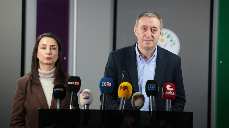 Halkların Eşitlik ve Demokrasi Partisi (DEM Parti) Eş Genel Başkanları Tülay Hatimoğulları ve Tuncer Bakırhan, Suriye Geçici Hükümeti'ne bağlı, Türk devleti destekli çetelerin Halep kentinin  Şexmeqsud ve Eşrefiye mahallelerine yönelik katliam saldırılarına karşı basın toplantısı düzenledi.
