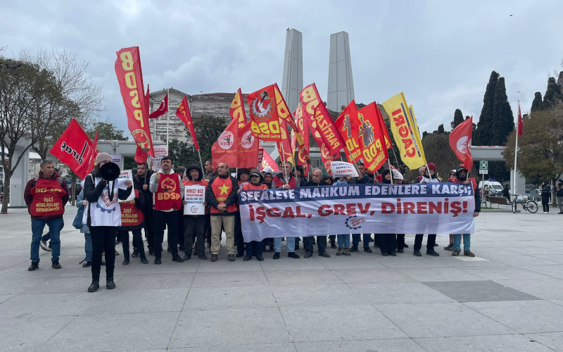 Ülkenin dört bir yanında işçi sınıfının hakları için grevler örgütlediği belirtilen açıklamada şu ifaeler yer aldı: "Smart Solar işçileri sefalet dayatmasına karşı direnerek haklarını korudu. Binlerce Migros işçisi tüm baskılara rağmen direndi ve kazandı. Yalnızca bu topraklarda değil, dünyanın dört bir yanında işçiler sokakta. Emperyalist barbarlığa, savaş politikalarına, sömürüye ve yoksulluğa karşı; insanca, eşit ve özgür bir yaşam için mücadele ediyorlar. Bu çürümüş düzeni yıkıp onurlu bir yaşam kurmak bizim elimizde. Açlığa, sefalete, sömürüye, zam ve vergi soygununa, savaş politikalarına karşı birleşik mücadele geleceğimizi kazanmanın şartıdır. İnsanca çalışma ve yaşam koşulları için genel grev, genel direnişi örgütleyelim."