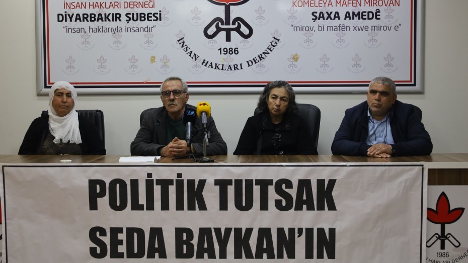 İnsan Hakları Derneği (İHD) Amed Şubesi, Diyarbakır Kadın Kapalı Hapishanesi'nde tutulan, tecrit ve hak ihlallerine karşı süresiz açlık grevi eylemine başlayan komünist tutsak Seda Baykan için basın toplantısı düzenlendi. Şube binasında gerçekleşen toplantıya Seda Baykan'ın annesi Dilek Baykan, Tutsakların Sesi İnisiyatifi üyesi Hüseyin İldan, Amed Tutuklu ve Hükümlü Aileleri ile Yardımlaşma Derneği (TUHAY-DER) katıldı.
