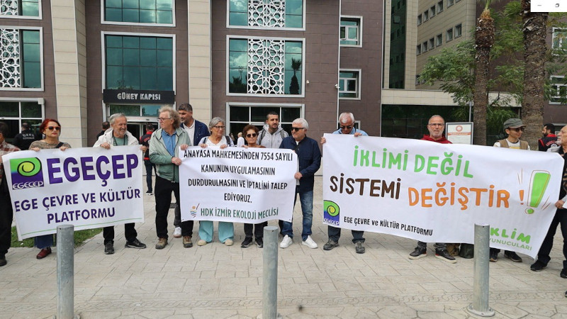 Ekoloji örgütleri "süper talan yasası" için İzmir Bölge Adliyesine dilekçe verdi. Halkların Demokratik Kongresi (HDK) İzmir Ekoloji Meclisi, Ege Çevre Platformu (EGEÇEP), adliye önünde basın açıklaması yaptı.
