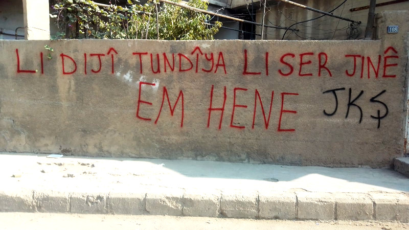 Devrimci Komünist Kadınlar (JKŞ), "Em Hene" şiarı ile başlattıkları kampanya kapsamında Qamişlo'da yazılama yaptı.