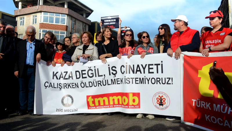 İSİG Meclisi, TMMOB Kocaeli İKK, Kocaeli Tabip Odasının çağrısıyla çok sayıda kişi işyerinin önüne geldi. İşçilere mezar olan işyerinin önü polis barikatıyla kapatıldı. Kitle sloganlarla tepki gösterdi. Eylem için buluşanların kararlılığı karşısında polis geri adım atmak zorunda kaldı. Sloganlarla bina önüne gelen kitle, "Kaza değil iş cinayeti, çalışırken ölmek istemiyoruz" pankartı açtı.