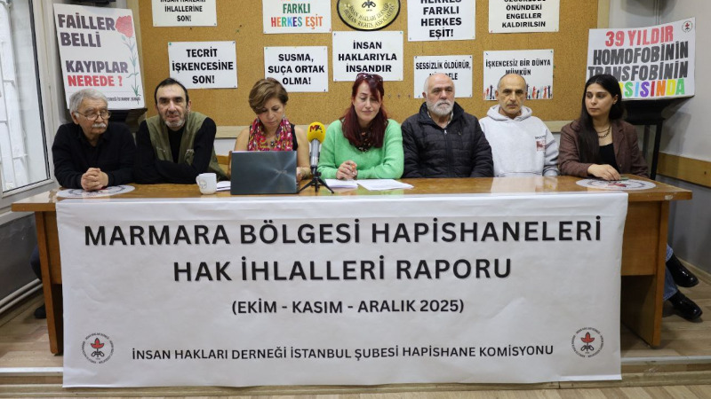 İnsan Hakları Derneği (İHD) İstanbul Şubesi Hapishane Komisyonu, Marmara Bölgesi hapishanelerinde yaşanan hak ihlallerine ilişkin üç aylık raporunu Beyoğlu'nda bulunan dernek binasında yaptığı basın toplantısı ile kamuoyuna duyurdu. Ekim, Kasım ve Aralık 2025 aylarını kapsayan rapor; tutsak başvuruları, basın taraması ve resmi veriler ışığında hazırlandı. Raporda, hapishanelerdeki yapısal sorunların çözülmediği gibi, ihlallerin birçok başlık altında derinleşerek devam ettiği vurgulandı.