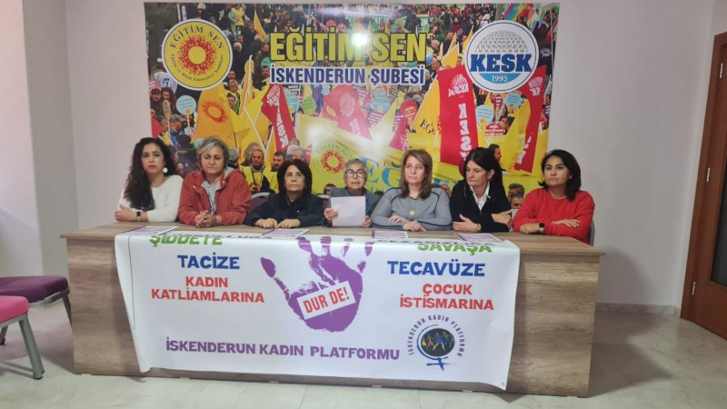 İskenderun Kadın Platformu, Eğitim-Sen İskenderun Şubesinde basın toplantısı düzenleyerek, Meclis lokantasında çalışan stajyer öğrencilere yönelik taciz ve istismar saldırısına tepki gösterdi.