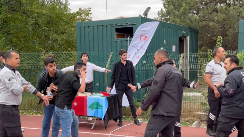 Topluluğun Ülkü Ocakları ile bağlantılı olduğunu belirterek stant açmalarına karşı çıkan devrimci öğrencilerle Türkoloji toplululuğu arasında tartışma ve arbede yaşandı.