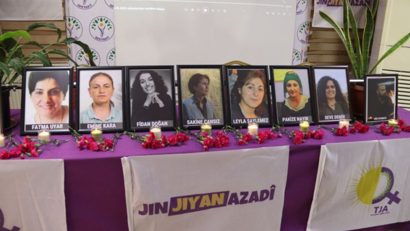 Halkların Eşitlik ve Demokrasi Partisi (DEM Parti) İzmir İl binasında Paris ve Silopi'de katledilen kadınlar için anma gerçekleştirildi. Anmanın yapıldığı salona, karanfil ve mumlarla birlikte katledilen kadınların fotoğrafları konuldu. Anma, saygı duruşuyla başladı. Ardından hazırlanan sinevizyon gösterimi izlendi.