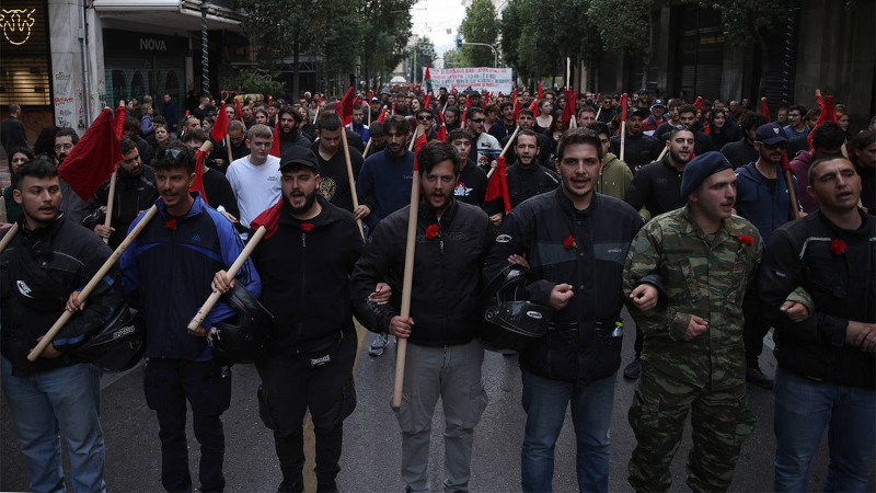 Politeknik Üniversitesi'nden başlayan ve 50 bini aşkın kişinin katıldığı yürüyüş, Parlamento binasının bulunduğu Sintagma Meydanı ve ardından da ABD'nin Atina Büyükelçiliğine uzandı. Yürüyüş boyunca "Ekmek, eğitim, özgürlük", "Filistin'e özgürlük", "ABD dışarı, üsler kapatılsın", "Katil ABD" sloganları atıldı.