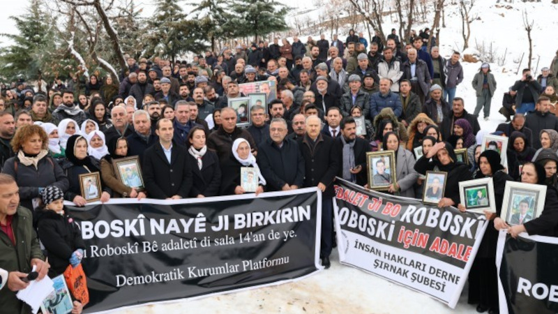Şırnak'ın Uludere ilçesine bağlı Roboskî köyünde, 28 Aralık 2011'de Türk Silahlı Kuvvetleri'ne (TSK) ait savaş uçaklarının bombardımanıyla 19'u çocuk 34 kişinin katledilmesinin üzerinden 14 yıl geçti. Katliamda yaşamını yitirenler, köy mezarlığında düzenlenen törenle anıldı. Anmada, "Roboskî naye ji bîr kirin", "Edalet ji bo Roboskî" yazılı pankartlar ile katliamda yaşamını yitirenlerin fotoğrafları yer aldı. Anma boyunca sık sık "Şehîd namirin" sloganı atıldı.