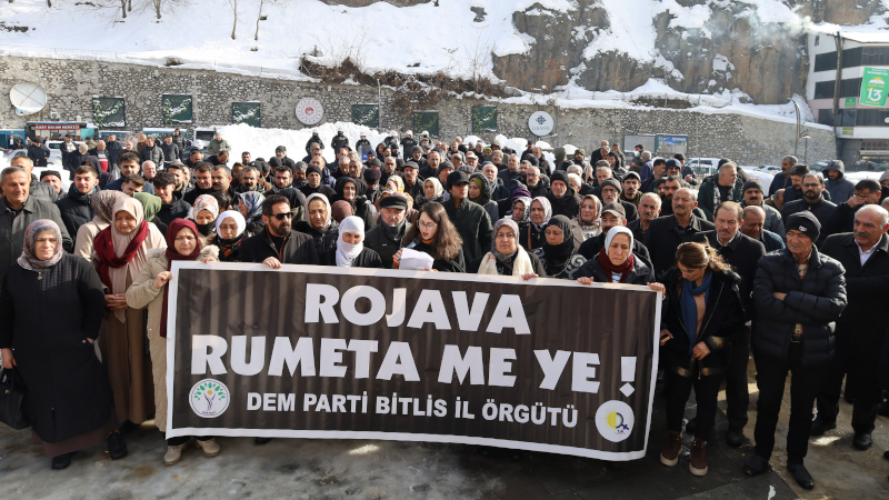 Bitlis Demokratik Kurumlar Platformu da DEM Parti İl binası önünden Ulu Camiye yürüdü. Siyasi parti ve demokratik kitle örgütü temsilcileri ve halkın katılımıyla gerçekleştirilecek yürüyüş polis tarafından engellenmeye çalışıldı. Kitle polisin engelleme girişimini boşa çıkardı, "Bijî berxwedana Rojava" sloganı ve alkışlarla yürüyüş yaptı.