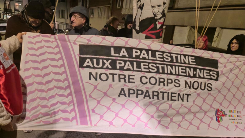 SKB, Belçika'da bulunan İsrail Konsolosluğu önünde Zora temsilcisi Anna Liedtke'ye dönük cinsel saldırıyı protesto etti.