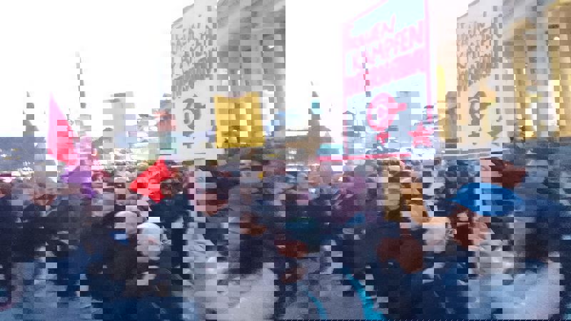 ADGB bileşeni örgütler ile MLKP ve Yunanistan Komünist Partisi'nin bayraklarının da taşındığı eylemde enternasyonal dayanışma sloganları atıldı.