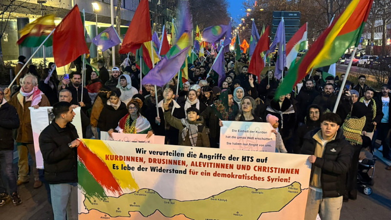 Almanya'nın Stuttgart kentinde Rojava'ya dönük saldırıları protesto etmek ve Rojava ile Rojhilat halklarıyla dayanışma amacıyla Demokratik Kürt Toplum Merkezi ile Emperyalist Savaş ve Irkçılığa karşı Platform tarafından kitlesel bir yürüyüş düzenlendi.